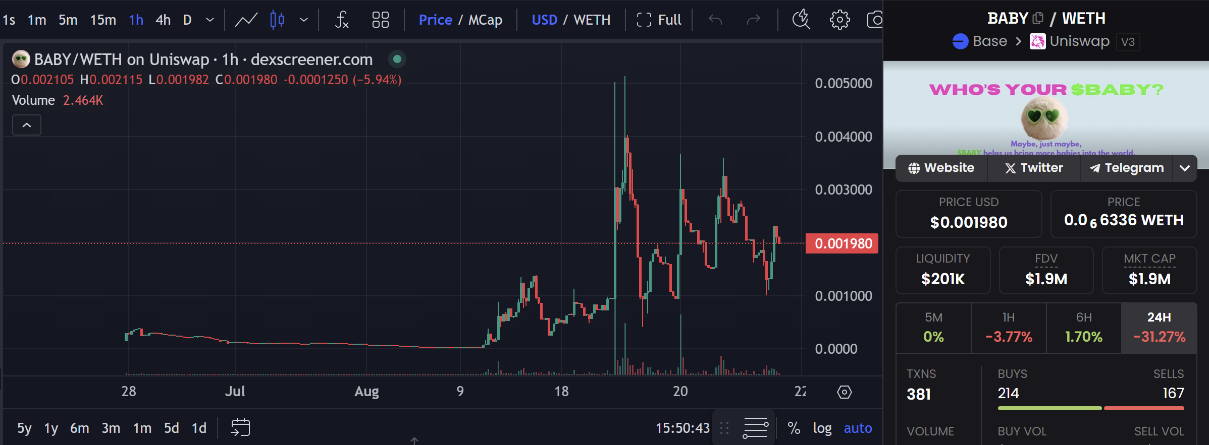 Baby 是由 Bio Protocol 旗下 DAO 组织 AthenaDAO 支持。属于 Desci DAO 概念。AthenaDAO 在 Base 网络上部署了 5 ETH 增加流动性,以支持 Desci 的 meme 项目。11 月 20 日 BABY 宣布推出跨链代币兑换功能,用户可以跨链至 Base 网络并兑换 BABY 代币。目前 Baby 在中文社区的声音并不是很多,而且市值也较低,维持在 200 万左右。