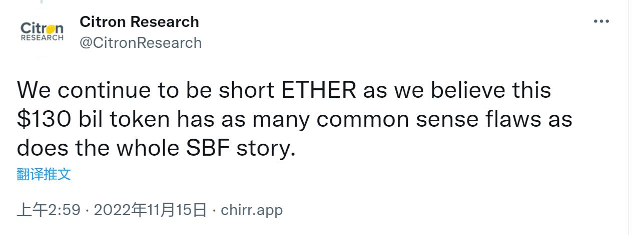 在此契机下,香橼资本再度出手, 11 月 21 日在推特发文表示: