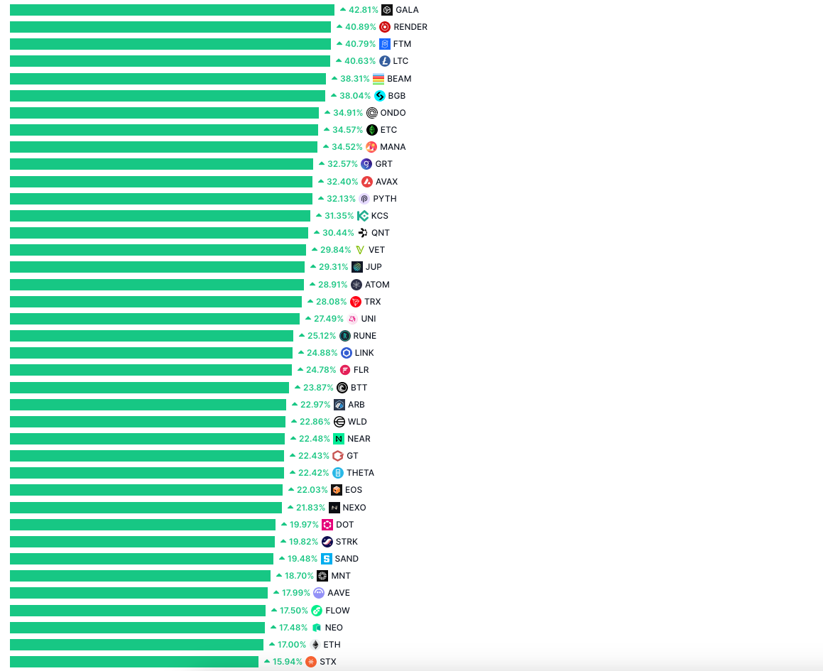 相对于热火朝天的 Meme 市场,老牌山寨币似乎都在悄然拉涨,不像 Meme 币那样吸引眼球,却以稳健的涨幅积累着市场的关注。