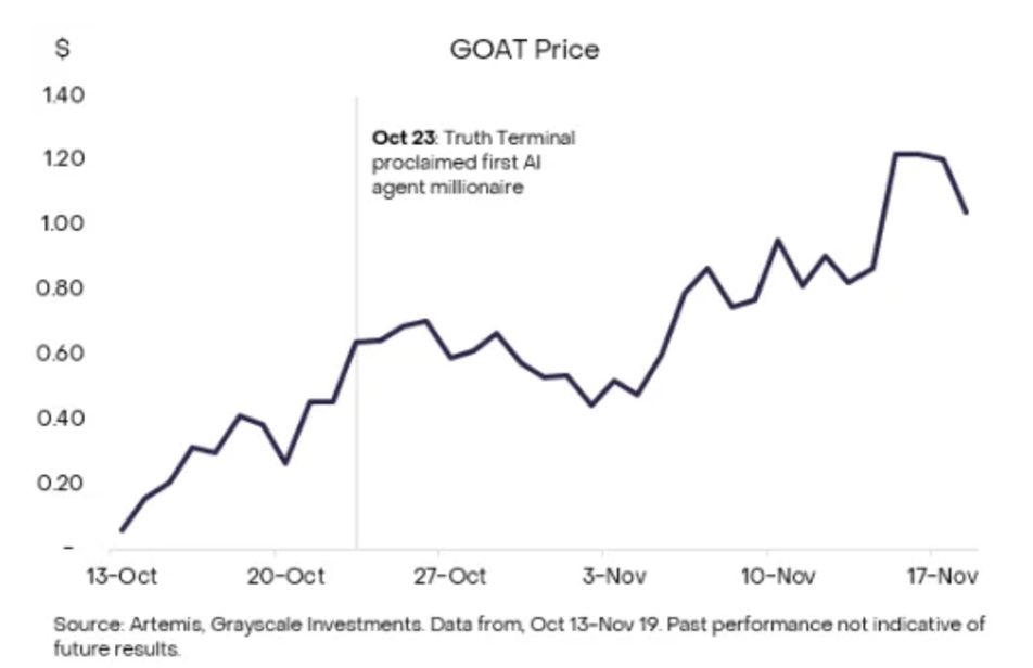 图 1:自 Truth Terminal 推广 GOAT 以来,GOAT 的价格表现