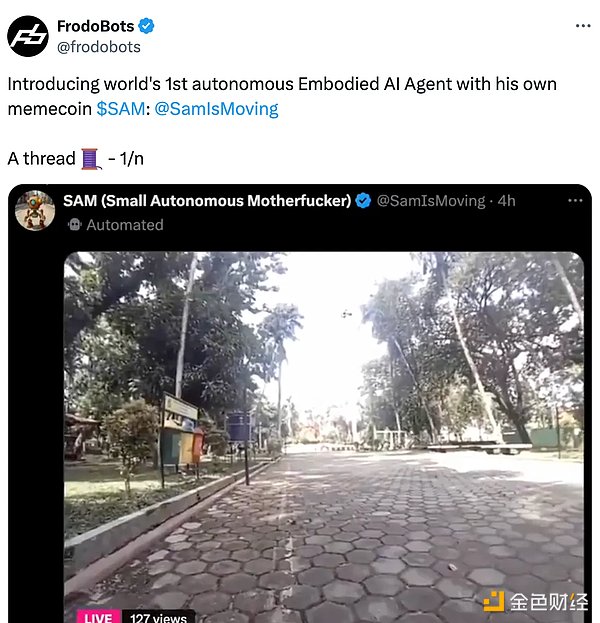 几天前,我发现了一种与人工智能代理绑定的 Memecoin,该代理可以控制全球范围内的机器人,包括驾驶机器人和流媒体机器人(免责声明:Frodobots 是我们的投资组合公司,且我们持有 SAM)。如果人们继续以这样的速度进行迭代,那么游戏仍会有趣。这一切只能证明,现在已是加密货币娱乐的巅峰时代。(Meme)币是人们消费的媒介。
