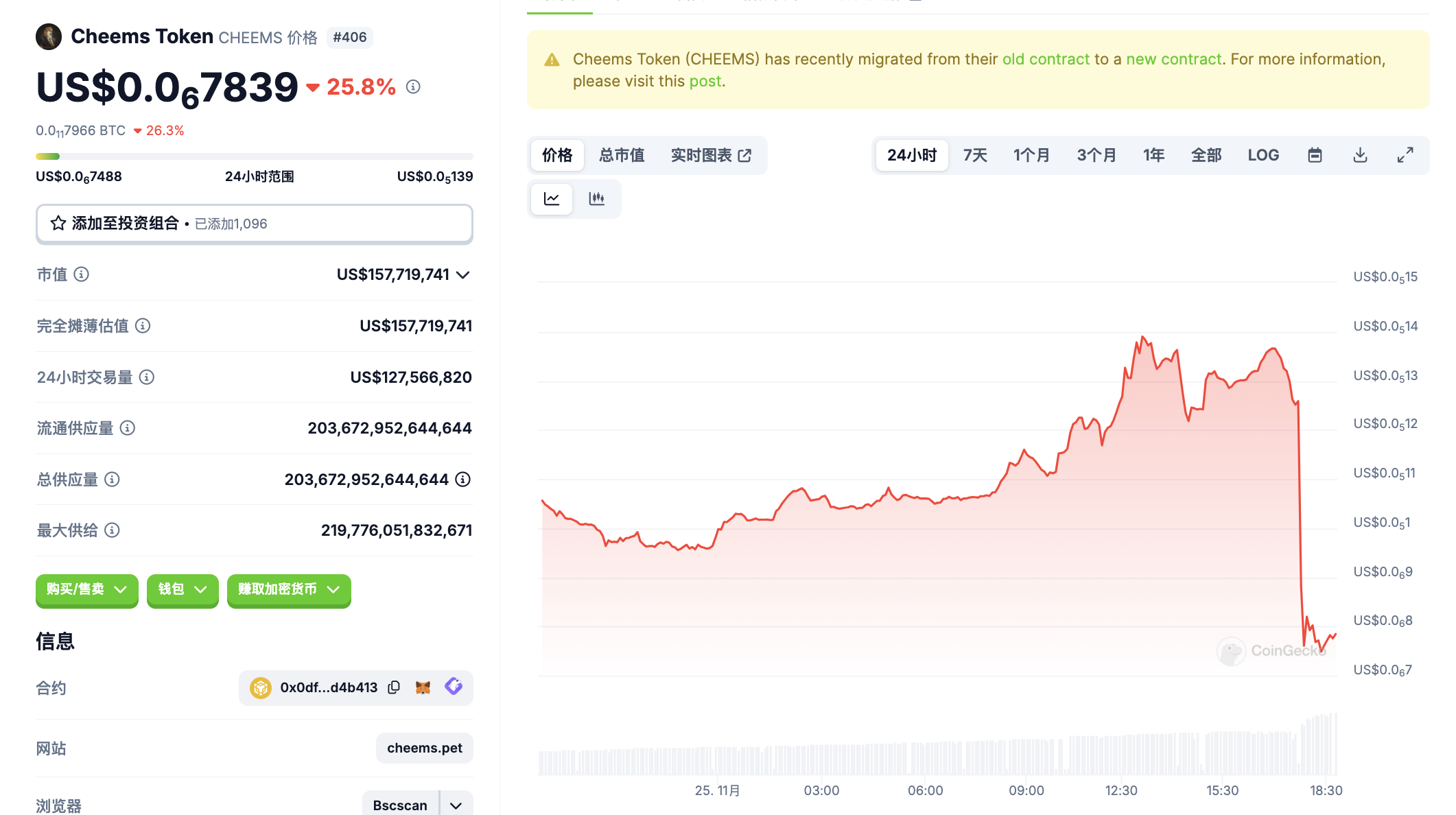 2.Binance 上币公告发布后,CHEEMS 首笔大额买入地址以「腰斩」形式离场