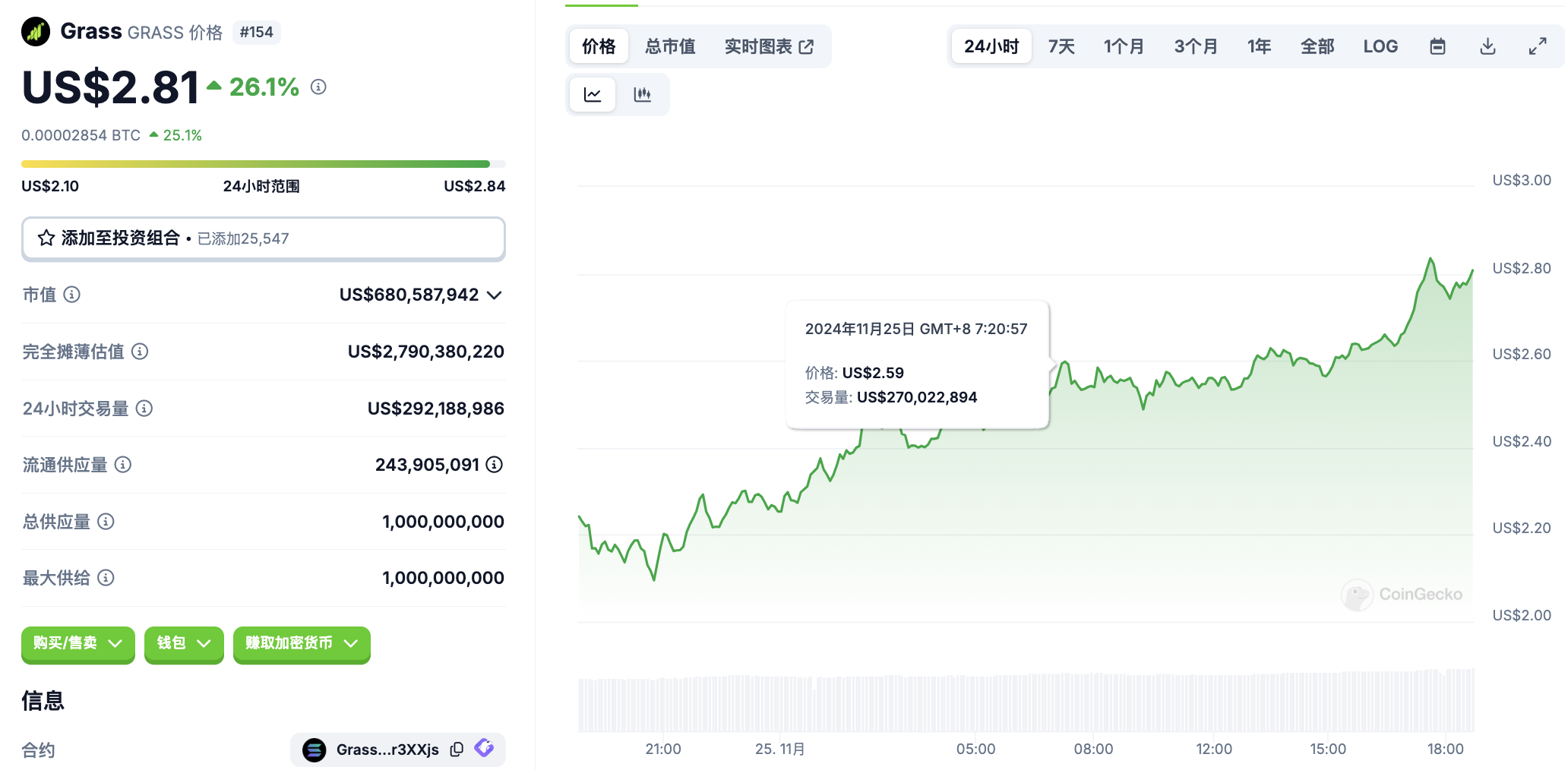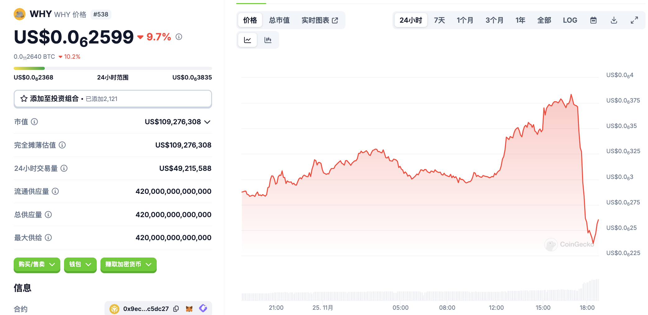 11 月 25 日代币波动情况,按交易量筛选并排列