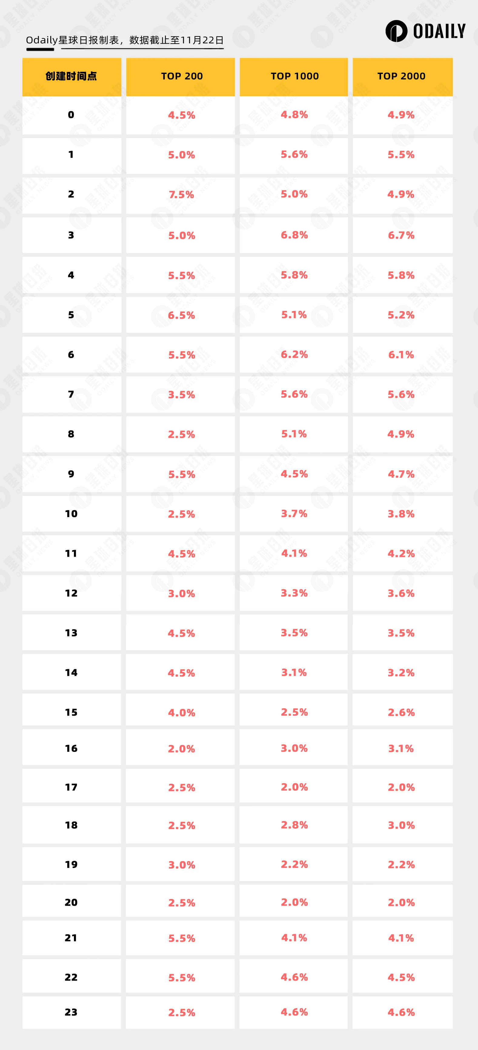 “今天夜里又出了一个千倍大金狗”、“睡个午觉就错过百倍”,不知你是否有过这样的体会,金狗总是在自己不在的时间偷袭,等反应过来的时候市值已经超过八位数。那么,什么时间金狗最为频发?是否必须在这个时段内在线才有机会?Odaily 将于本文进行复盘。