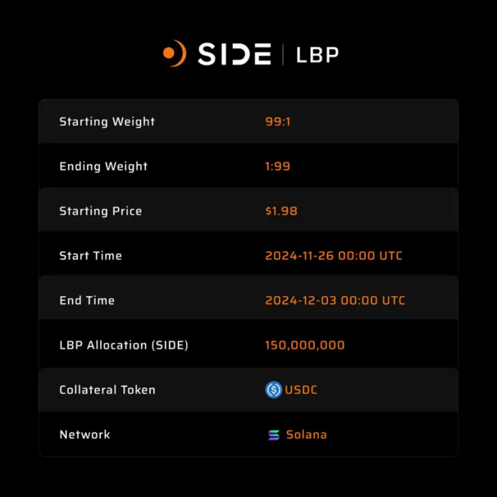 The Last One 活动将在 LBP 头部平台 Fjord Foundry 上进行,该平台曾协助多个项目融资总额超 10多亿美元。值得一提的是,这是 Fjord Foundry 的首个 Solana LBP 活动,参与者需使用 SOL 代币 购买 $SIDE。
