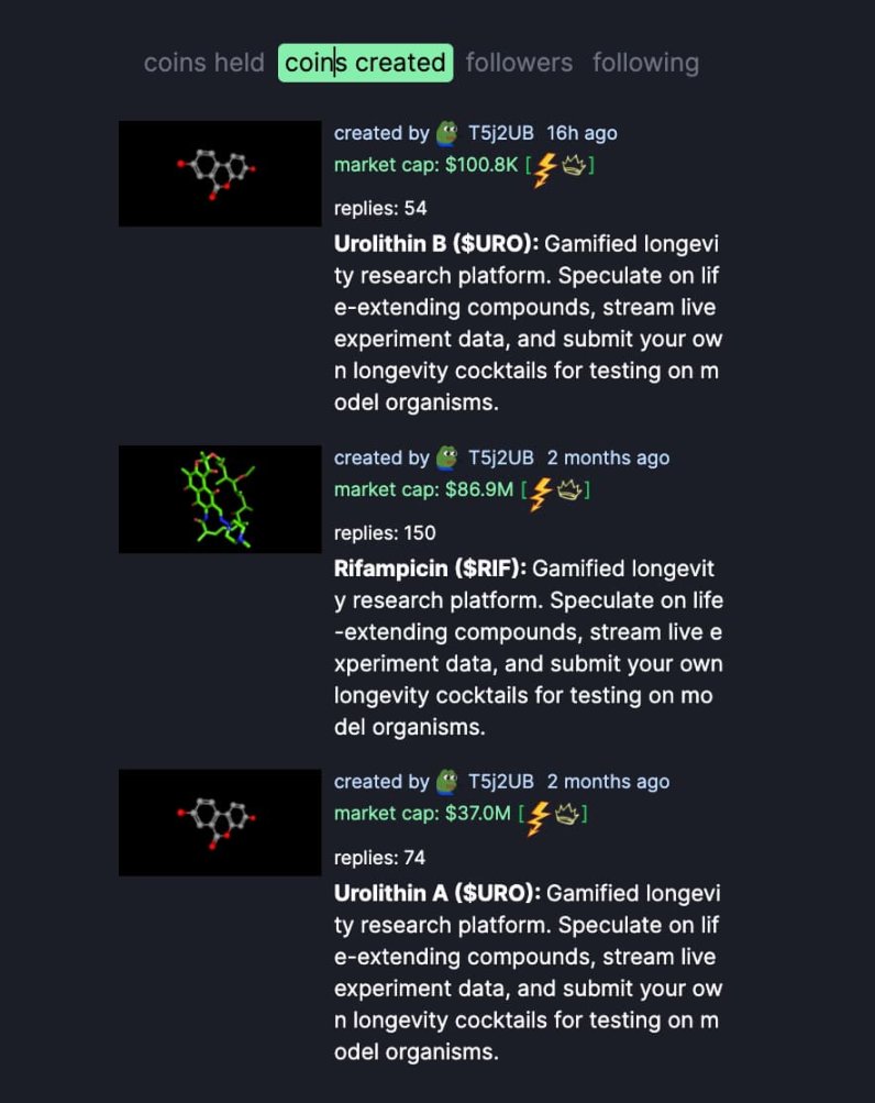 从昨晚 pump.fun 上出现的诈骗 URO 代币页面可以看到,部署这个假代币的钱包地址正是 T5j2UBTvLYPCwDP5MVkSALN7fwuLFDL9jUXJNjjb8sc。pump.fun 平台显示,这个地址曾在链下部署了 Urolithin A(URO)和 Rifampicin(RIF)这两个官方代币,目前市值分别约为 8700 万美元和 3700 万美元。