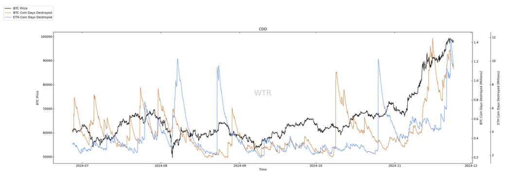 BTC 和 ETH 均有部分⽼地址进⾏盈利抛售。