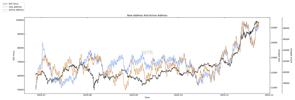 2. 新增活跃地址较处于⾼位,市场活跃度极⾼。