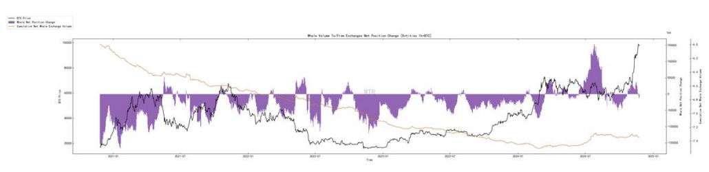 ⼀般巨鲸开始轻微的卖出筹码,从这个⻆度来看市场的 10 万美⾦的价格并不是特别好突破。可能需要⼀点时间。