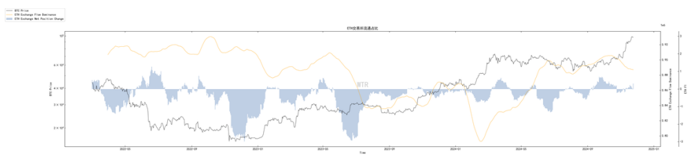 ETH 交易所流通占⽐的⽐率有轻微上升,可能当前市场的⻛险偏好有轻微升⾼,其波动性可能也会增加。
