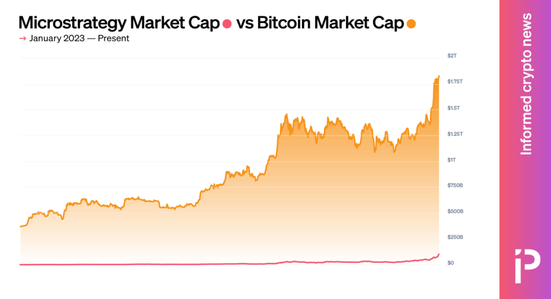 2023 年,MicroStrategy 的故事在金融市场中如同一场资本的迷宫探险,充满了冒险与雄心勃勃的算计。其市值从年初的 18 亿美元飙升至当前的 1110 亿美元,这背后的推动力与逻辑链条耐人寻味。作为一家以比特币为核心战略的公司,MicroStrategy 的行动不仅是传统金融手段与加密货币市场之间的桥梁,也对 web3 行业的未来产生了深远影响。Aiying FundInsight 将深入解读 MicroStrategy 在比特币驱动、资本杠杆与治理变革中的战略逻辑,以及这对整个 web3 金融生态的启示。