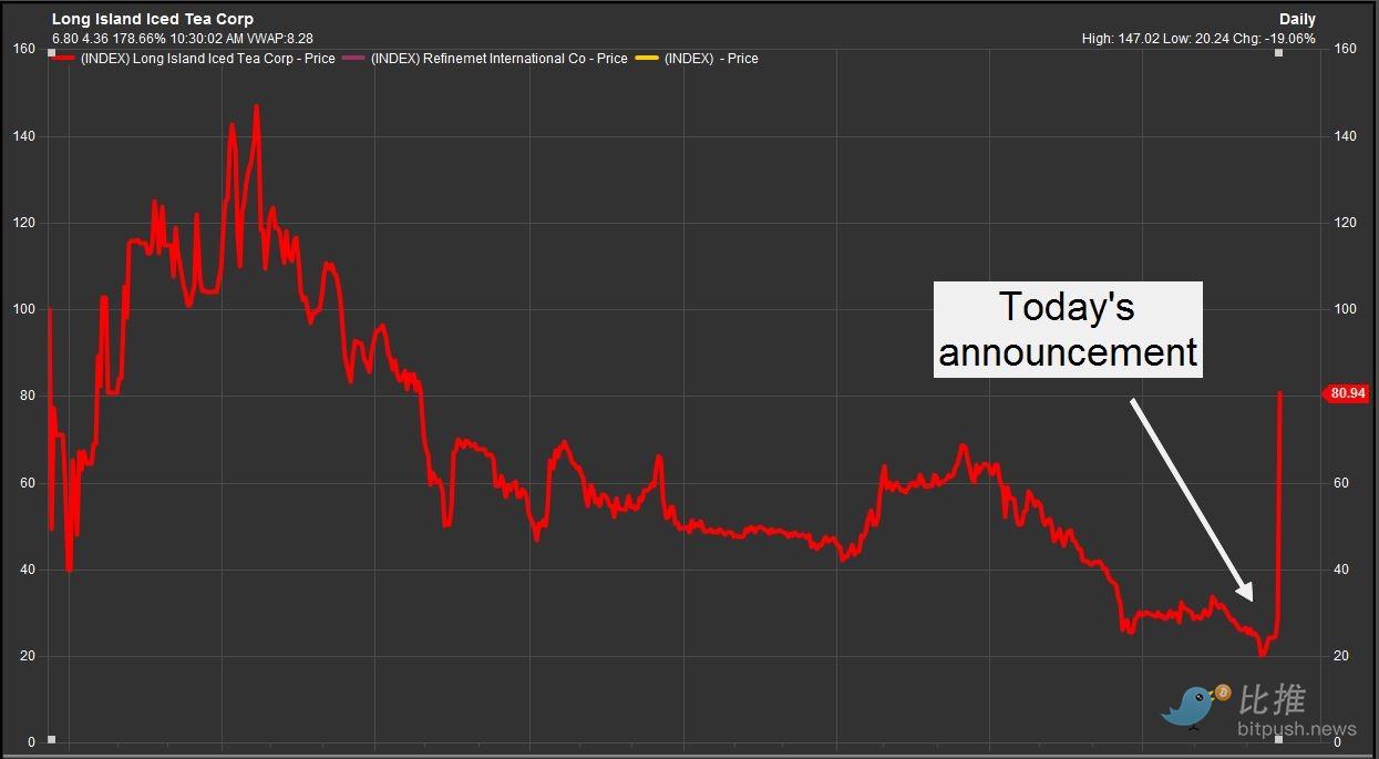 最著名的例子是名不见经传的饮料制造商长岛冰茶 (Long Island Iced Tea) 将自己更名为 Long Blockchain,至少在最初取得了爆炸性成果:在更名为加密货币后,其股价在一天内几乎上涨了两倍。涨幅未能持续,该股票后来被纳斯达克摘牌。(三人被美国证券交易委员会指控内幕交易。)