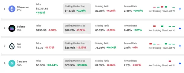 根据stakingrewards.com的统计数据,Cardano(ADA)为质押总价值排名第四的加密货币,其网络ADA质押总价值近 210亿美元,质押率高达 61% 以上。表明ADA 进行了集中锁筹,一定程度上控制了市场流通量。