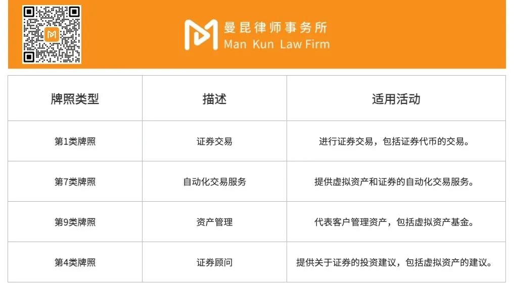 看到这里,新的问题也来了:牌照这么多,如果我想在香港做虚拟货币相关的业务,这些牌照我需要全部申请吗?曼昆律师的答案是,不需要!