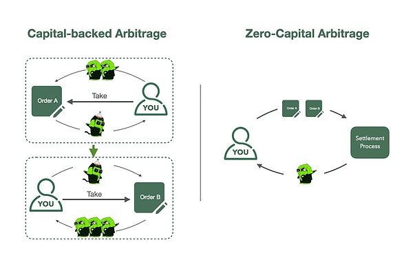 零资金套利:就是所谓的空手套白狼。其实质是套利者把两个存在利差的 note,同时拿去结算。可以看下面这张图。