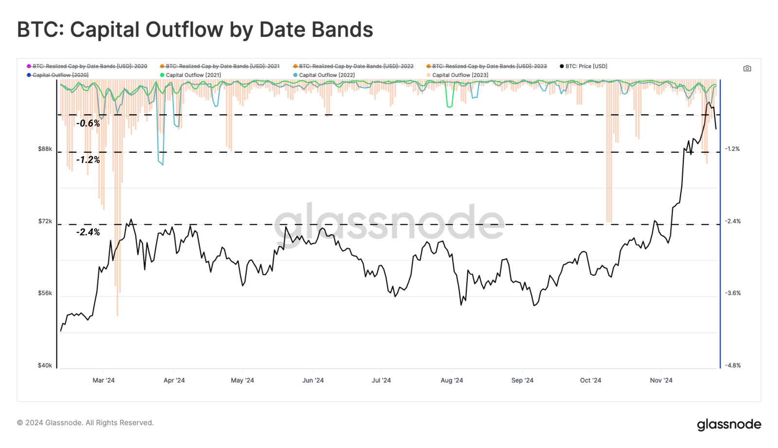 有趣的是,我们可以观察到 LTH 支出的相对比率高于 2024 年 3 月的 ATH,这凸显了更积极的出售活动。