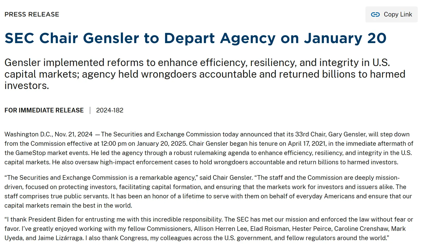 Gary Gensler 或许并未想到,自己成也加密,败也加密。即使其在 26 年离职才算正常,但仍决定在拜登辞职、特朗普就职的当天选择离开。