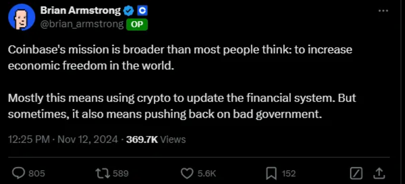 作为美国最大的交易平台之一,Coinbase 不仅在商业上占据重要地位,还经常代表整个加密行业进行法律和政治斗争。