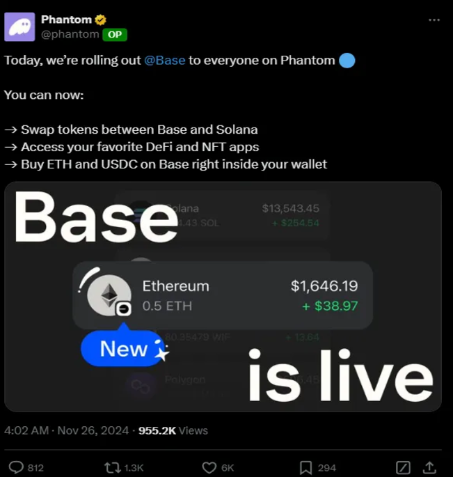 但我认为,Base 正在迎来类似的趋势,或者已经非常接近。例如,就在今天,Phantom 宣布将支持 Base: