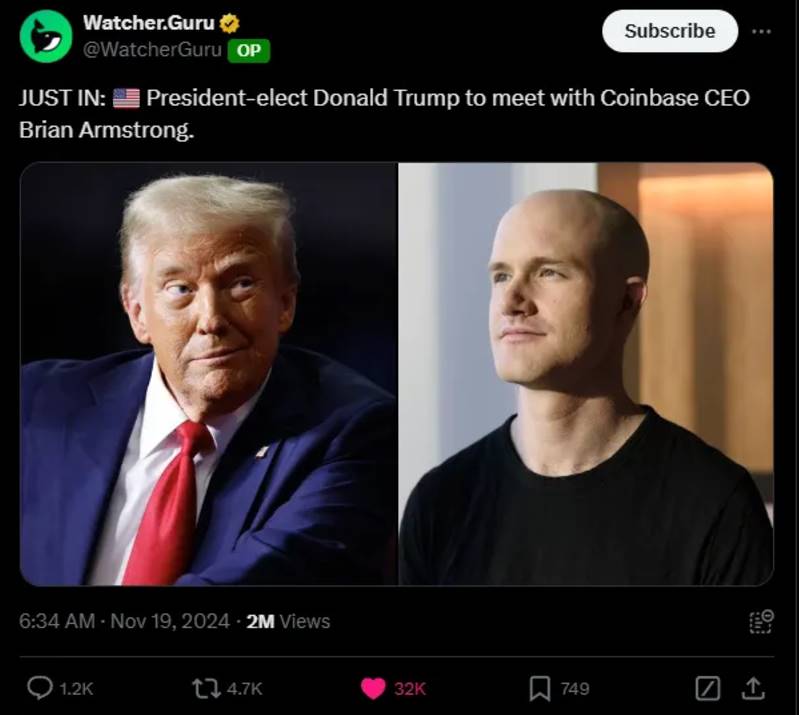 Brian Armstrong 随便与特朗普会面,讨论加密货币政策。顺便说一下,Brian 真的是个非常了不起的人物,可以阅读这篇来自 2020 年的文章(是的,抱歉,我又要求你读更多的东西了),并回想一下那时的世界是什么样的,以及当时大多数大型科技公司在政治立场上的态度,再对比一下 Brian 带领 Coinbase 所采取的截然不同的做法。