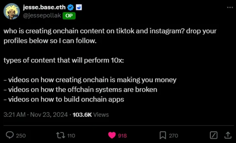 Coinbase 的使命是增加全球的经济自由,并将 10 亿人带入链上生态。虽然他们对任何链上拥有 10 亿用户都会感到高兴,但显然,他们特别希望能吸引这些用户到他们自己的 Base 链上。