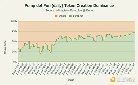 大约每 100 个代币中就有一个从 pump.fun「毕业」,这是由于巨大的饱和和有限的流动性以及其他超出本文范围的原因。那些走上擂台的人必须展示一些有趣的、令人震惊的独特的东西,才能让战壕里的战士们注意到。尽管存在这些困难,但该协议很快就确立了自己作为交易微市值代币和发布新代币的名符其实的门户地位,迅速超越了该领域的所有其他竞对。