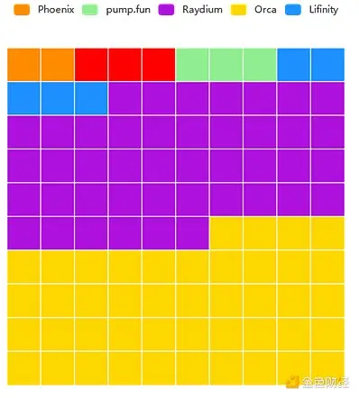 无论是否是秘密发布,pump.fun 发布还是预售代币,绝大多数 meme 币流动性池都来自 Raydium。大量 meme 涌入市场便增加了其市场份额,去中心化交易所占据 Solana 当前链上交易量的相当大一部分比例。