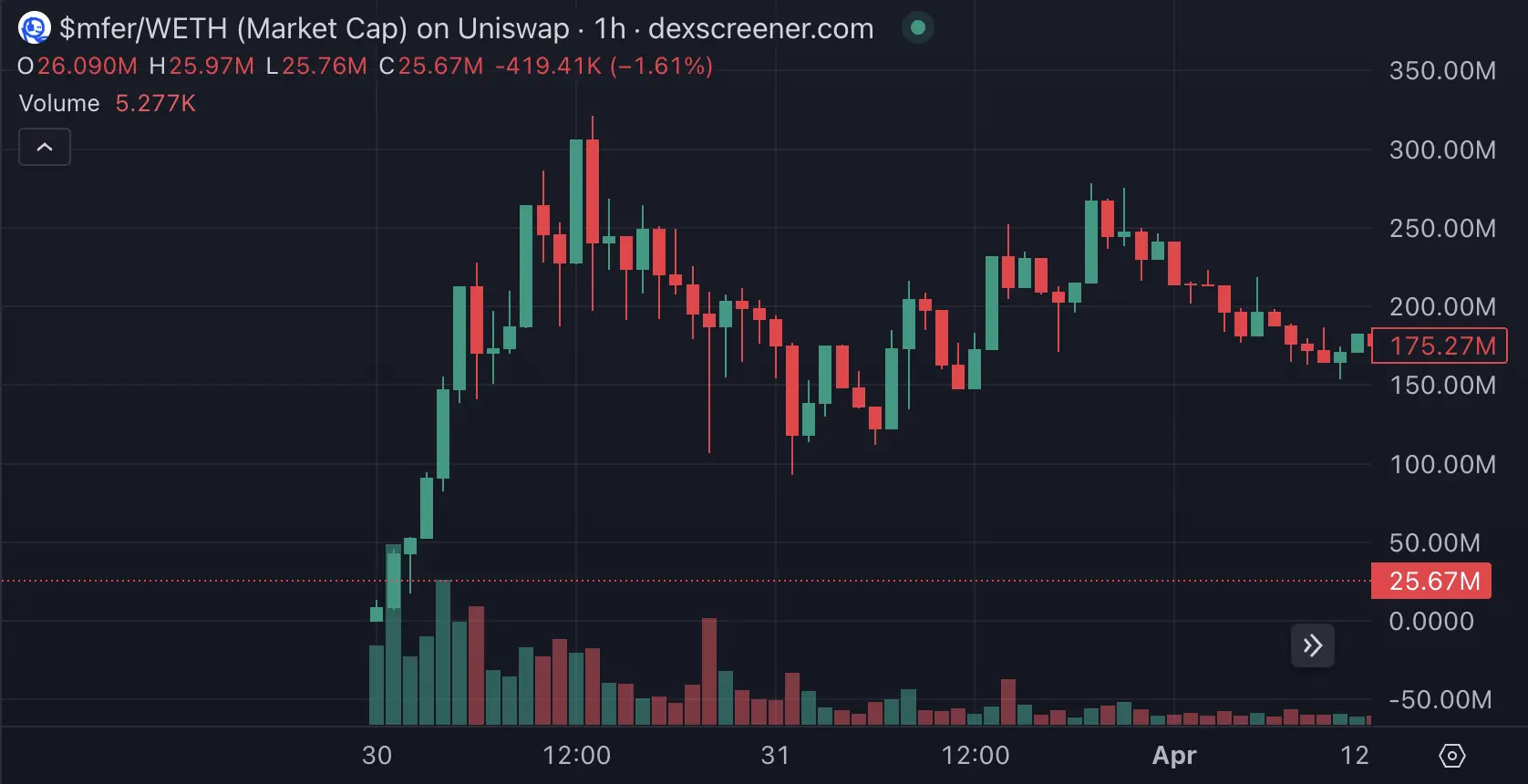 第二天,他的第一次赚钱机遇降临了——mfers NFT 创始人发行的 meme 币 mfer。