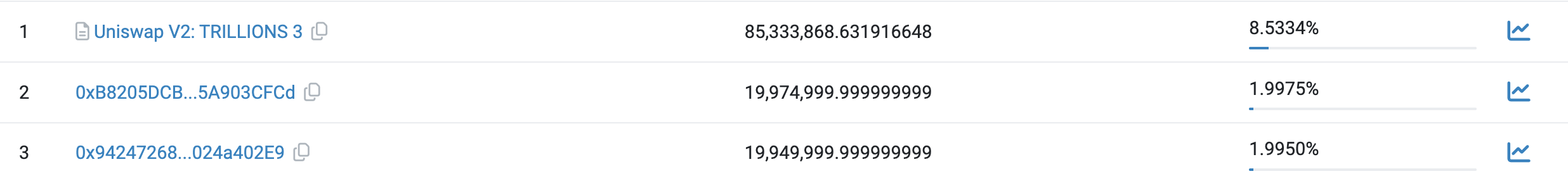 TenArmor 近期检测到的 Rugpull 事件中,Holder 的分布也非常有特点。我们随机选取了 3 个 Rugpull 事件涉及的 token 的 holder 分布。其情况如下。