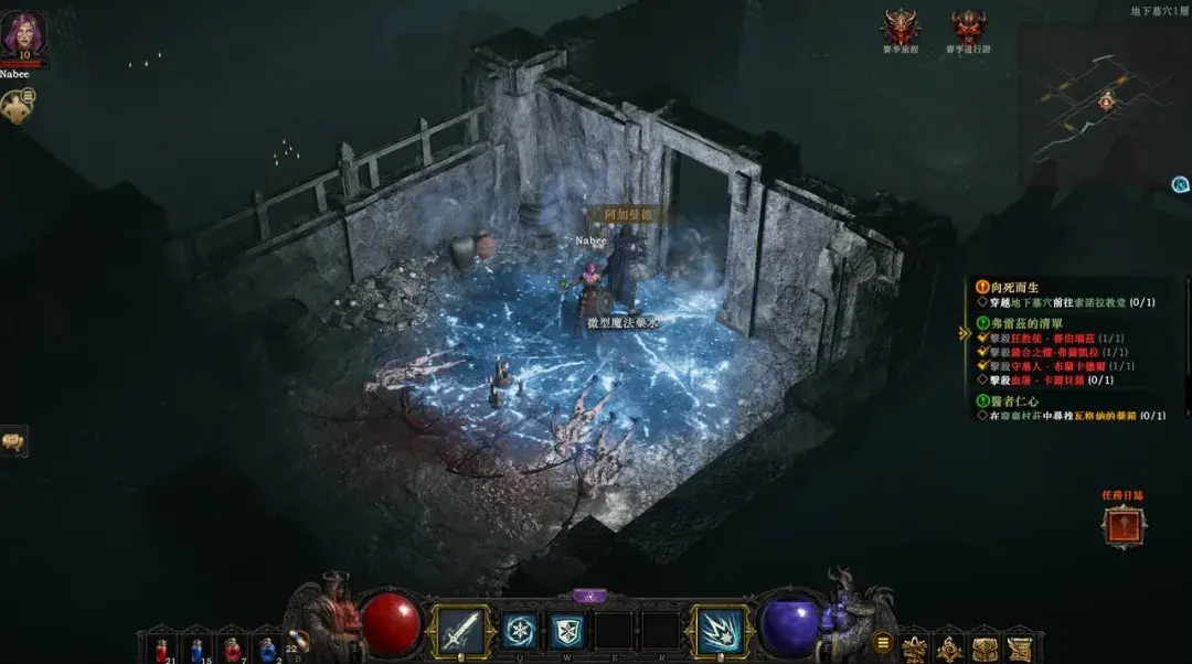 简单来说,你在进入游戏后首先创建游戏角色,然后接取任务体验剧情,操作角色移动、攻击、施展技能来击败敌人并通关一系列挑战,期间不断熟悉角色的技能和游戏玩法,一直升级到 60 级。60 级之后便开始进入游戏的核心玩法,即刷宝玩法。玩家反复挑战更为困难的地下城里的怪物和 BOSS 来获取更高级且稀有的装备来提升自己,形成刷宝游戏的正向循环。搭配多重难度等级与不同玩法的赛季模式,体验更高难度的挑战和更新鲜刺激的游戏体验。