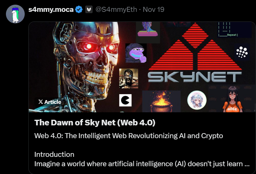 上周关于 Web 4.0 的探讨揭示了加密货币与人工智能交汇的契机,这一话题正持续引发广泛关注。