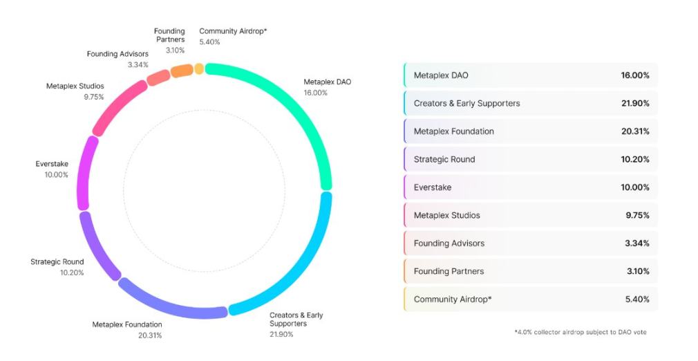 Metaplex 的协议代币是 MPLX,总量为 10 亿。