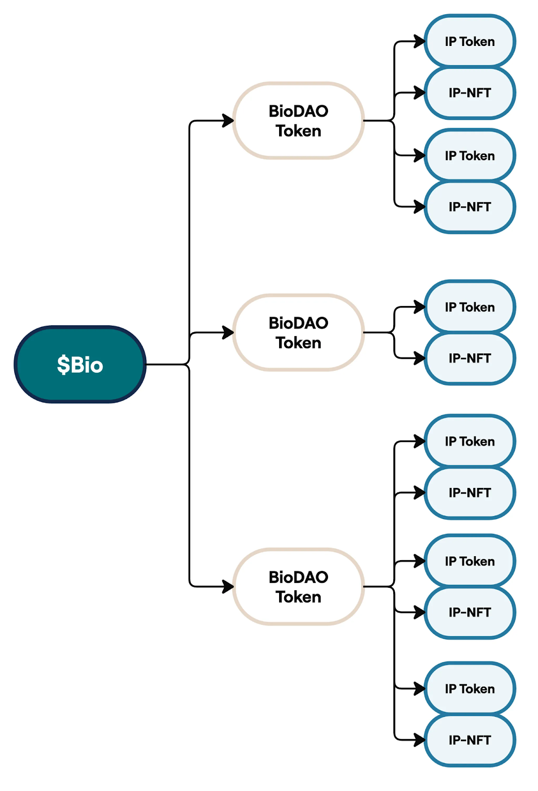 BIO目前有7个活跃的DAO,研究内容长寿健康、脱发治疗、大脑健康等。需要注意的是,BioDAO并不是指在某一方向,比如长寿健康赛道的一支研究团队,而是应该被看作BIO Protocol的具体实现。为什么我这样说?请看上图BIO Protocol商业模式导图,简单来说,BIO 是一个嵌套Launchpad,加上无收益staking,加上激励,加上内嵌Launchpad实现无限拆分盘。BIO 由这四部分组成。