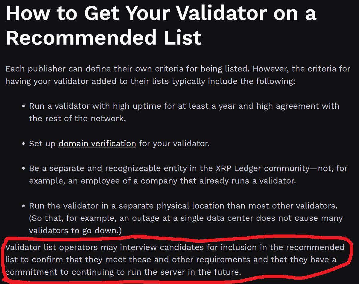 在其他所有区块链中,你都无法选择验证者,因为他们是无需信任且无需许可的,这就是为什么验证者可以匿名,因为它是由加密经济博弈论而不是信任来保障的,这就是 XRP 的根本不同之处。