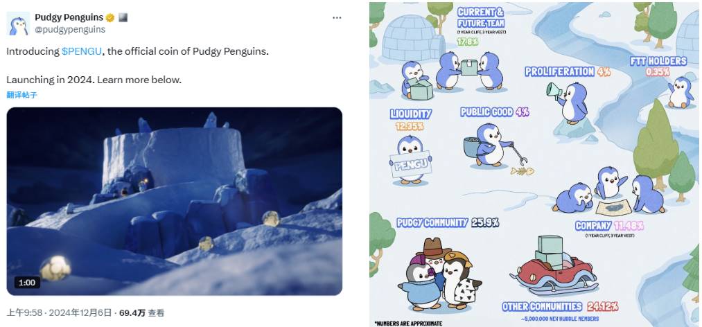 虽然还没公布具体日期和分配细则,但大致的代币分配比例已经释出,在整体分配中最大的份额(25.9%)给到 Pudgy 社区;同时 24.12% 给到其他社区分配,甚至还留了 0.35% 给 $FTT Holder。