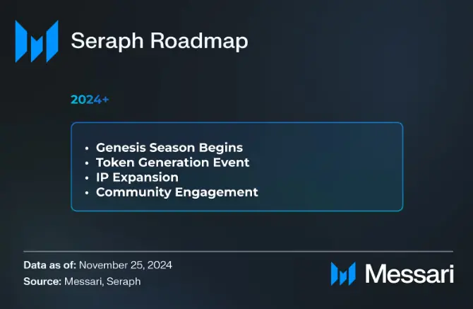 Seraph 已经证明了其盈利能力。从2024年8月22日到2024年9月25日,Seraph在游戏内收入超过200万美元,创下了90,000名独立玩家的历史新高。在最近的30天(2024年11月-12月),Seraph的交易量超过了2000万次,Seraph生态系统中的独立玩家数量达到了184万人。