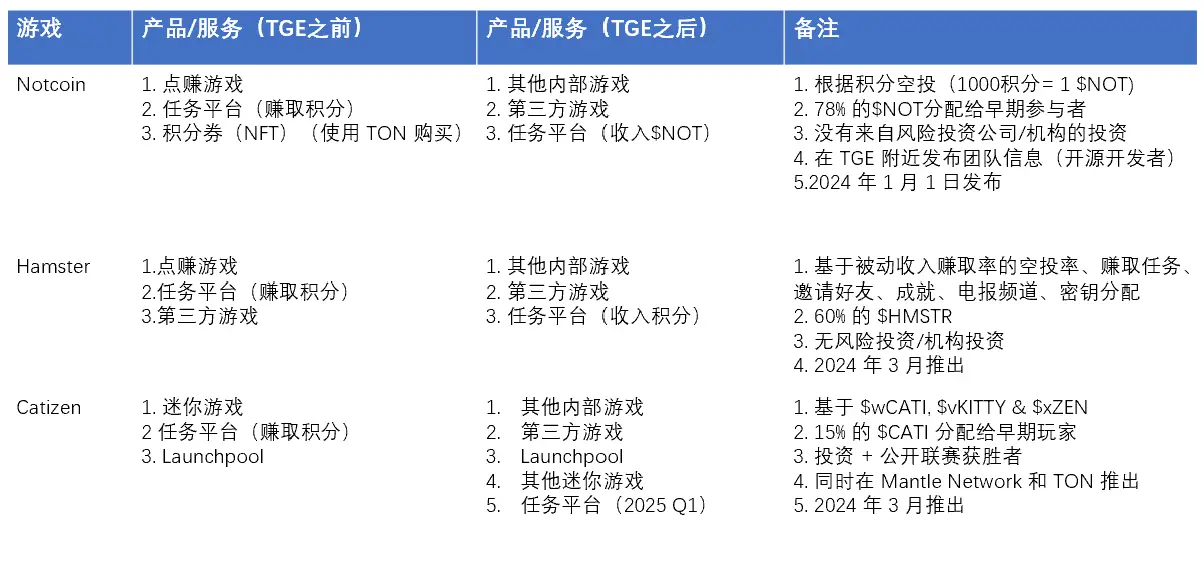 作为此次合作中最成功的类别之一,值得深入分析三大亮点项目:Notcoin、Hamster Kombat 和 Catizen。