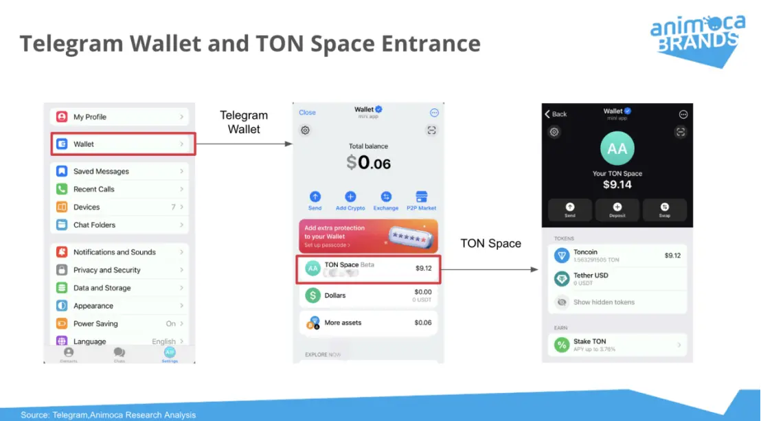 支持这一转化的基础设施已在Telegram上到位。到 2023 年 11 月,Telegram钱包和非托管 TON Space 钱包已集成到 Telegram 中,使美国以外的用户能够接收 Jettons( TON 区块链上的可替代代币标准)。