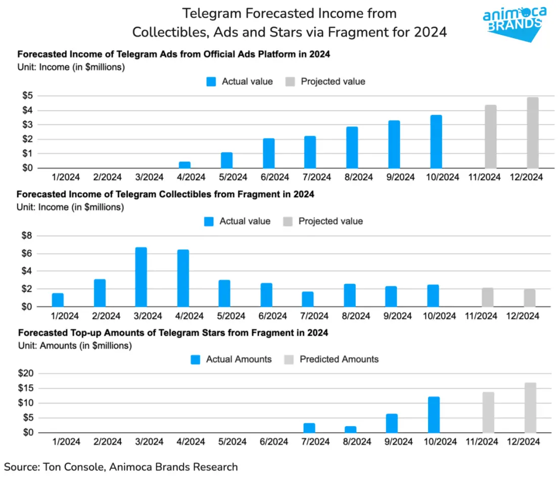 增强的用户参与度显著提高了 Telegram 从其平台运营中创收的能力。现有的收入来源,如 Telegram 广告、收藏品销售和高级账户订阅,都经历了显著增长。此外,新推出的 Telegram Stars 为平台提供了额外的收入来源。