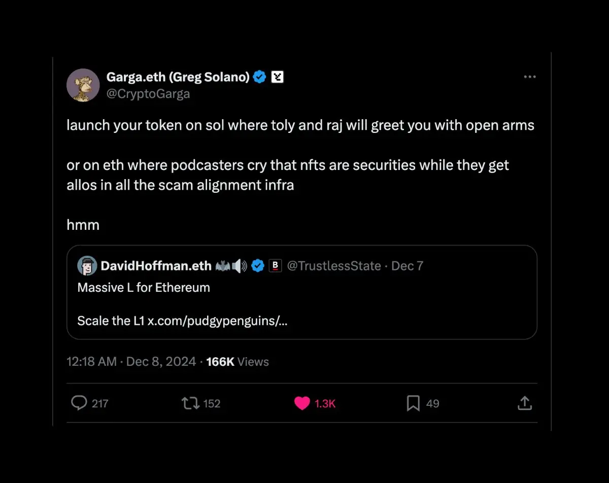 在 ETH 上推出项目:你可能会被播客主持人攻击,这些人曾花费多年时间指责 NFT 是证券,同时却在“对齐 (alignment)”分配中获取自己的利益