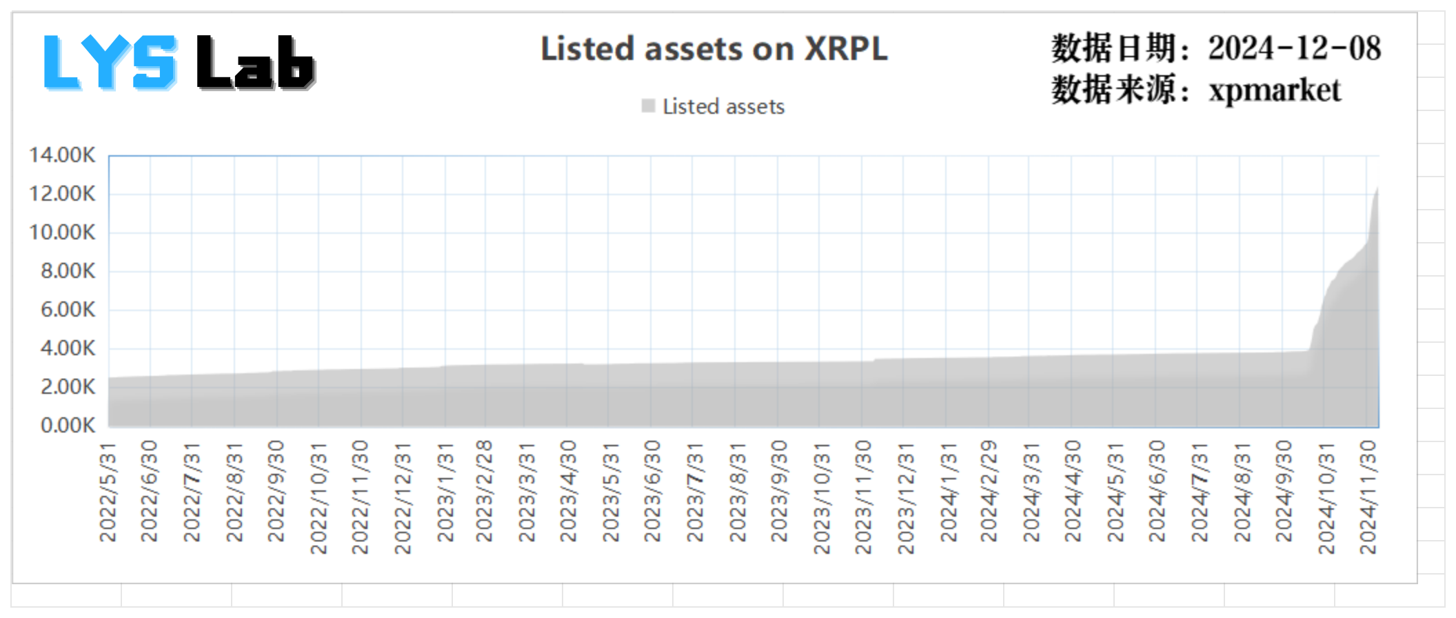 从 2024 年 10 月末(美大选接近尾声时)开始,XRPL 上的资产数量开始暴增,2024 年 12 月 8 日已经达到了 12,428。其余时段,资产数量缓慢增长。