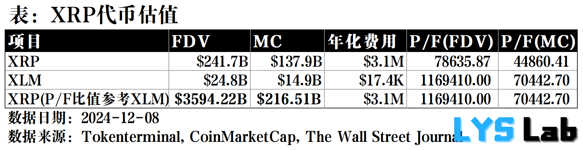 可以看出,相对于竞品 XLM,XRP 的 PF 比值还要更低,价格更具性价比。根据当前的 XRP 流通数量 61,935,346,471(XRPScan),可计算出对应的 XRP 代币价格约为 $3.4957。这说明,根据此处的估值方法,此时 XRP 的市值和价格仍可能有一定上探的空间。考虑到 XRP 价格的 ATH 是 $3.84,本文的估值可能相对保守。