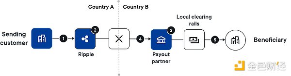 XRP 将被转移并转换为目的国货币,由支付合作伙伴进行分配。