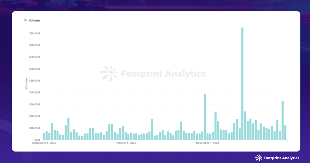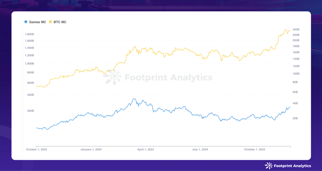 2024 年 11 月 Web3 游戏行业市场增长显著但大规模采用策略仍在演进。随着比特币创下历史新高并接近 10 万美元里程碑,游戏板块市值大涨 79.1% 至 351 亿美元。尽管传统指标表现亮眼,日活跃用户达到 550 万,但该行业在区块链整合和大规模采纳方面仍面临着一些问题。