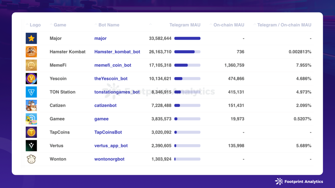 数据来源:热门 Telegram 游戏 MAU 及其对应 TON 链上 MAU