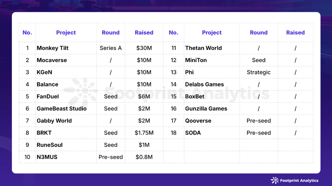 2024 年 11 月区块链游戏领域投融资事件(来源:crypto-fundraising.info)