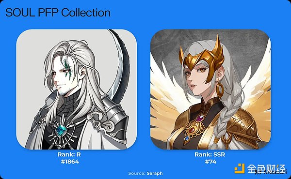 此外,Seraph 推出了一套名为 SOUL PFP 的头像 NFT 合集,包括 6000 个 NFT,其中 500 个为 SSR(超级稀有),其余为 R(稀有)。持有该系列 NFT 的玩家将被视为核心玩家群体。