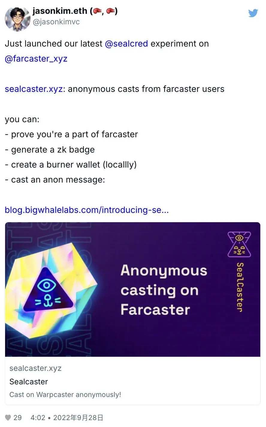 作为 Farcaster 协议上首批实际应用的零知识项目之一,Sealcaster 展示了隐私保护和可验证通信在去中心化平台上的巨大潜力。