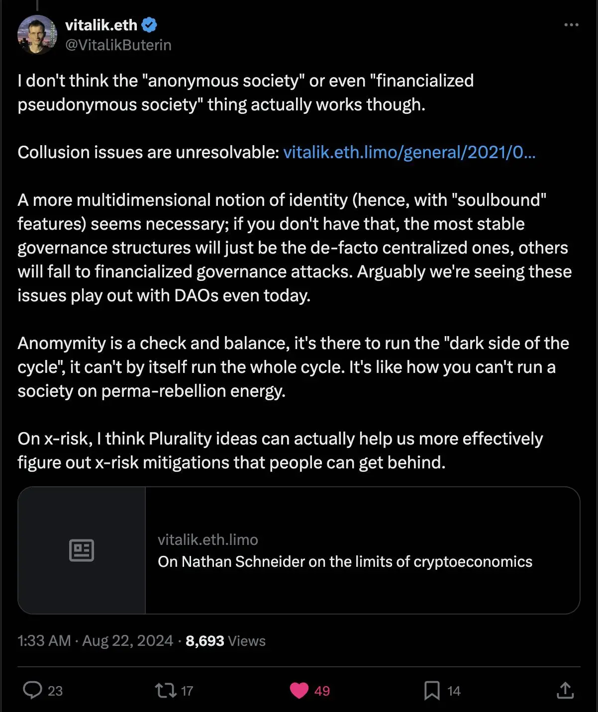 全面转向完全金融化的化名框架,可能会忽略人类社会交互的复杂性。然而,真正的潜力并不在于绝对的匿名,而在于构建多样化且复杂的身份模型。
