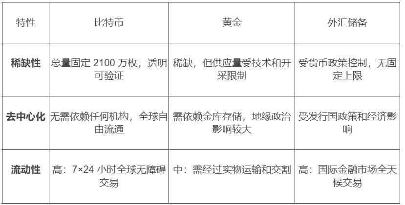 由此可见,能够成为「战略储备」的资产,需同时具备价值稳定、全球认可、便捷流通等综合优势。而比特币作为新兴数字资产,正逐步满足这些条件,开始被视为黄金之外的潜在选项。